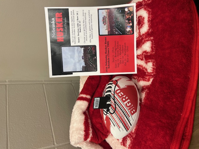 Pair of Huskers football tickets to one 2026 home game + cozy Husker blanket and football