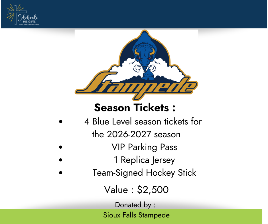 4 tickets to any remaining 2025-2026 regular season Stampede Hockey games.